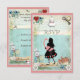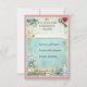Elegant, whimsical vintage Alice in Wonderland collage rsvp flat cards for weddings, bridal showers, birthday party, sweet 16, baby shower etc. On the front of these cute shabby chic colorful blue and pink invitations a pretty Alice silhouette carrying a cute whimsical pink flamingo , the grinning Cheshire cat, a teapot, glamorous gold pocket watch, jam tart heart, and the white rabbit with his pocket watch. The background is a beautiful colourful blue vintage journal paper with blue roses and white daisies and antique key. There is a pretty pink border with tiny hearts. On the reverse of these lovely, fun invites is the same background with a cute drink me bottle, jam tart heart, teacup and saucer. PLEASE NOTE: All products on Zazzle have flat printed images. All of the text is fully customizable to meet your needs and you can change the font style, color and size of font if you desire. If you need any assistance customizing your product please contact me through my store and I will be happy to help. I have matching products in my store.