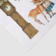 Alice with her arm around a deer looking on at the Mad Hatter who is holding a tray of tarts and offering some to Alice while Chesire the cat is also eying the tarts while sitting on top of the grandfather clock. Time is better spent with friends.