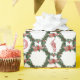The Cheshire Cat, Alice, the Mad Hatter and the White Rabbit from the classic children's book Alice in Wonderland appear with a pattern of green and red holly wreaths on a white background on this lovely gift wrap. Matching items are available in my Zazzle store.
