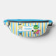 Cute Alice in Wonderland fanny pack for a children's book lover. Little girl Alice in her blue dress and the Mad Hatter sit on a pretty blue yellow stripes. Customize this whimsical librarian gift with your name or other text.