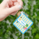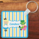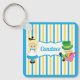 Cute Alice in Wonderland keychain for a book lover. Little girl Alice in her blue dress and the Mad Hatter sit on a pretty blue yellow stripes. Customize this whimsical gift with your name or other text.