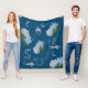 Alice in Wonderland with the quotation from the book, Curiouser and curiouser, cried Alice, with butterflies, beautiful blue and white hydrangeas, a vintage pocket watch, fancy teapot and writng and postmarks from an old French letter are set on a deep cobalt navy blue background with pretty handwriting and text from a vintage French shop receipt to make a pretty, nostalgic floral French literary themed throw blanket.