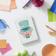 I was super excited when I got my cover in. It is attached by a magnet across the edge. I don’t think it will be very protective but it is very cute. I’m going to keep my iPad in a sleeve and use this face cover while I have it out. It folds to create a tilt for better viewing and to keep the iPad at a slight angle for typing. The colors are bright and it is fun. I’ve really enjoyed it. The personalization looks like amazing. It is the same color as the picture and is the same brightness. Well done! Very nice.