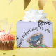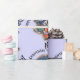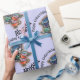 This custom wrapping paper features an Alice in Wonderland fairy tale theme on a soft purple background. An image of the Mad Hatter's Hat is pictured with a stack of whimsical teacups. A sample birthday greeting that says "Happy Unbirthday to You" is printed above the hat, and a sample name is printed below. You can personalize the gift wrap to include your own custom name and text.