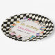 Alice in Wonderland kids birthday paper plate, with black & white background. Personalize with your info. Mad tea party paper plates. Wording can be adjusted for any birthday. Match with other Alice in Wonderland birthday party items from "Alice in Wonderland Birthday" collection.