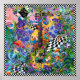 Colorful Alice in Wonderland Tea Party Violin fantasy landscape by Juleez. Tribute to Alice in Wonderland featuring a hand painted violin hidden in this detailed garden of flowers and characters by Juleez.