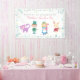Alice in Wonderland Second Birthday banner for your baby girl's 2nd birthday. Featuring Alice with a flamingo, the Mad Hatter, grinning Cheshire Cat, and the White Rabbit. Cute and sweet Welcome to Wonderland and "Tea for Two" theme for a second birthday!