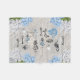 So many fun and whimsical vintage images from the book Alice in Wonderland: the girl Alice, White Rabbit, Cheshire Cat, vintage teapot, cup, pocket watch and keys, and the quotation, Curiouser and curiouser cried Alice, along with butterflies, on a white washed wood background framed by beautiful blue and white hydrangeas, make this great literary themed blue and black on white fleece blanket.