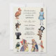 Unique, designer Alice in Wonderland Invitations made with vintage paper cut out illustrations. Features full color illustrations of Alice, White Rabbit, Mad Hatter, Cheshire Cat, Queen of Hearts, King of Hearts, Frog suitor, fish server and Dodo. A template that can easily be changed by you online. Just type over the example text in the personalize area above to change it to whatever you like. A baby shower/bridal shower/birthday party/tea party/ engagement etc.
