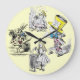 This fun wall clock for fans of Alice in Wonderland features four famous illustrations by artist John Tenniel from the Lewis Carroll book that continues to wow generation after generation. There's Alice being attacked by the pack of cards, Alice looking at the Drink Me bottle, the white rabbit who is the herald at the court of the Queen of Hearts and the Mad Hatter in his top hat. I've added a dash of color to the mad scenes. The clock would be a great housewarming gifts for fans of Alice and her friends.