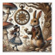 Step into a whimsical wonderland with this enchanting Alice in Wonderland illustration. The Victorian-styled White Rabbit holds his teacup with proper poise, while Alice in her iconic blue dress dreams of adventure. Mystical mushrooms dot the scene, and a fascinating clockwork tree bears a mysterious pocket watch - time is always of the essence in Wonderland! Perfect for nurseries, children's rooms, or any space needing a touch of magical charm. This delightful artwork captures the beloved story's essence with its detailed steampunk-inspired elements and dreamy atmosphere.