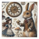 Step into a whimsical wonderland with this enchanting Alice in Wonderland illustration. The Victorian-styled White Rabbit holds his teacup with proper poise, while Alice in her iconic blue dress dreams of adventure. Mystical mushrooms dot the scene, and a fascinating clockwork tree bears a mysterious pocket watch - time is always of the essence in Wonderland! Perfect for nurseries, children's rooms, or any space needing a touch of magical charm. This delightful artwork captures the beloved story's essence with its detailed steampunk-inspired elements and dreamy atmosphere.