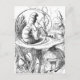 Vintage illustration from Alice in Wonderland depicting the Caterpillar sitting on a mushroom and Alice peering up at him.