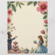 Get lost in a whimsical tea party with this delightful paper featuring Alice and the Mad Hatter. It showcases Alice holding a teacup and the Mad Hatter gesturing towards a tiered teacup stand, framed by a beautiful border of large pink flowers. With unlimited creative possibilities, this paper is perfect for invitations, scrapbooking, junk journaling, and other personalized projects. Printed in high-quality, full-color on thin matte paper, it's designed to bring a crisp, professional look to your personal or business mailings. Add personal photos and text for no additional upcharge, making it a versatile and memorable addition to any project.