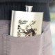 The product is a good size and came exactly as it was pictured. The lid is not attached to the flask, which could be dangerous on drunken nights... The print came out surprisingly well and looks very sharp. Would definitely recommend.
