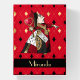 Fanciful design featuring a vintage illustration of the Queen of Hearts from Alice in Wonderland, in red tinted clothing on background of black / gold diamonds on red. Add name or other message to make this a truly unique and personalized gift.