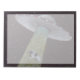 A color pencil drawing of an unfortunate cow being abducted by aliens in a flying saucer on a dark, starry night. The frightened herd huddles in the background.