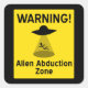 Warning ! - Alien Abduction Zone - warning sign humor in yellow and black with space ship and unfortunate stick figure.