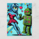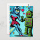AI generated art of a beautiful blue alien woman with one eye dancing with the green robot that loves her scifi art