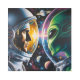 Alien and astronaut in space doing a stare down. Background of stars and planets.