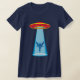 I love wearing a reprint of my colored pencil drawing of Annie the cat looking over the hillside. My illustration is based on a picture I took of Annie the manx cat. The printing turned out lovely, and the shirt is soft and thick. The American Apparel shirt run on the smaller size, so I always order a large or extra large.