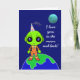 A colorful Friendly Alien with sentiment "I love you to the moon and back!" Inside "Happy Birthday to my favorite earthling!" Text can be customized.