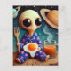 A funny Alien dressed in PJs with a coffee and egg for breakfast adorable AI generated art