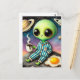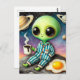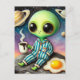 A funny Alien dressed in PJs with a coffee and egg for breakfast adorable AI generated art