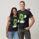 My 11 yo wore adult XL (5’7” 165#). The 8yo is small framed. She wore adult small and tied it in the back. Grandma wore adult large with long sleeve shirt underneath. Tall girl adult medium. Dark haired male adult large. Good quality dark Heather gray, Gildan brand shirt. -it was next up from basic choice and cost about $20 per shirt. Not too thick or thin. Washed and dried well, no major shrinkage. Not see-through. Can wear a bra under it fine. Screen print is just as shown and well done, front and back.