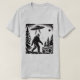 Designed in bold stencil-style art, this shirt captures Bigfoot himself, lurking at the edge of an ancient redwood forest, while a UFO hovers above—beaming down pure cosmic coolness. In the corner? A righteous 1980’s boombox, blasting old-school jams across time and space.