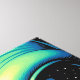 Extraterrestrial wall art. A captivating otherworldly design with an extraterrestrial alien being with big bulging eyes holding the reflections of other planets, including earth in them.