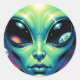 Alien Face with Planets Reflections in Eyes Classic Round Sticker