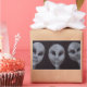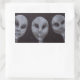 A color pencil drawing of three Alien Grey ETs against a starry black sky adorns this sticker!