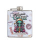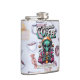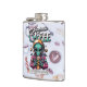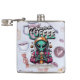 Well made flask, a little better than I had expected. Flask came in clear plastic box which gave it a nice presentation when I took it out of the zazzle packaging. Image is not printed on flask but on sticker. Don't know how this will hold up I haven't used it yet. This would make a Great gift! I plan to purchase more for friends! Cheers. I thought a little brighter than computer. Very crisp, writing wasn't
