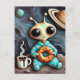 Alien in Blue PJs with a Coffee and Bagel Postcard