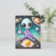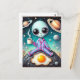 A funny Alien dressed in pjs with a morning coffee and a fried egg sitting on a rock
