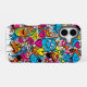 Strike back with a bold new look. This premium impact-resistant case for the iPhone 16 case features a unique, high-energy graffiti pattern starring quirky, multi-eyed alien monsters, hearts, stars, and crowns. The vivid blue, orange, and pink colour palette creates a futuristic urban art cover.