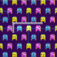 Alien monsters pixel graphic pink yellow blue fabric