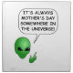 A cartoon alien head saying that's always mother's day somewhere in the universe.