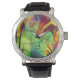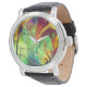 Alien fire Opal abstract on this Watch. Alien like view of panes of painted glass in swirls of colors reminiscent of fire opal, vivid blue,green,yellow, red, orange and purple