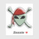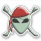 * Illustration of an alien 'Jolly Roger' pirate (embossed-look), with eye patch, skull and crossbones.