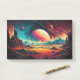 Alien planet landscape Psychedelic Space banner template, background Horizontal illustration of the future with mountains, planets, trees, moon Surrealist escapism