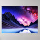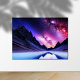 Abstract view of distant planet mountains and lake surface with colorful space above. Enhancing ambient of any room in home or office.