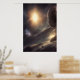 A cool alien planet with a moon and a sun in the sky. This is a AI generated art