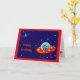 A cute alien birthday design featuring an alien spaceship travelling through space with stars and satellite in the background. The text is easy to customize to create the best personalized gift.
