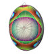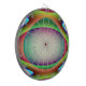This awesome dart board features a multicoloured pattern of bright psychedelic colors surrounding a central egg shaped structure. It resembles a fantasy of an alien spaceship ready to abduct an earthling.