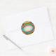 This sheet of round stickers features a multicoloured pattern of bright psychedelic colors surrounding a central egg shaped structure. It resembles a fantasy of an alien spaceship ready to abduct an earthling.
