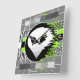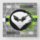 ATTENTION EARTHLINGS! Cool retro TV testcard inspired design featuring a stylised alien face and extra-terrestrial interference in shades of black, white, grey and green. A customizable design for you to personalise with your own text, images and ideas. An original digital art image created by Jess Perry.