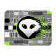 ATTENTION EARTHLINGS! Cool retro TV testcard inspired design featuring a stylised alien face and extra-terrestrial interference in shades of black, white, grey and green. A customizable design for you to personalise with your own text, images and ideas. An original digital art image created by Jess Perry.