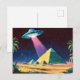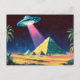 A surreal and imaginative design showcasing an alien UFO hovering above the Egyptian pyramids, blending ancient mystery with sci-fi intrigue.